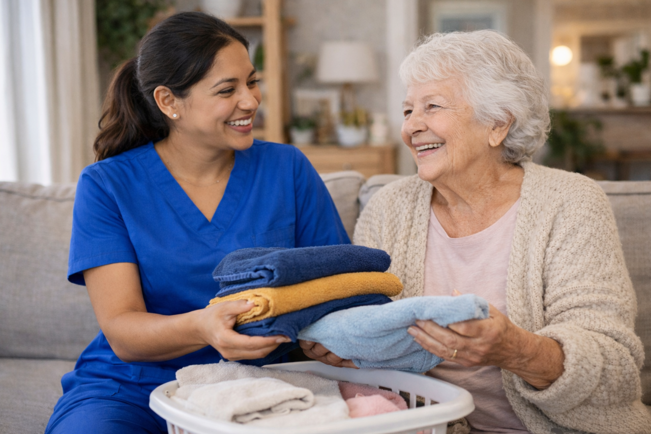 Keeping the home tidy with help such as laundry, organizing, and general cleaning support.